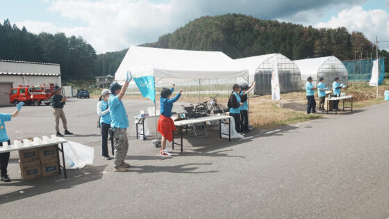 到着後、福島大学の学生さんや地元の消防団の方々と一緒に準備を進めます。