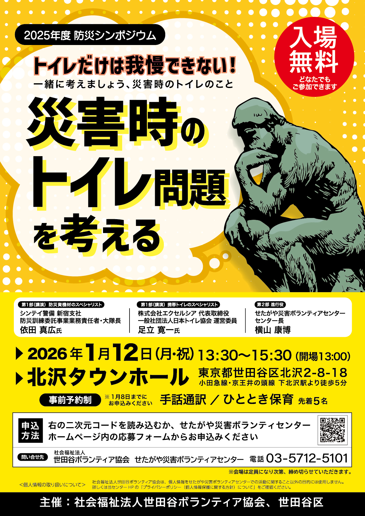 2026年1月12日防災シンポジウム「災害時のトイレ問題を考える」のご案内
