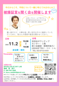 11/2(日) 被爆体験者の話を聞く会を開催します