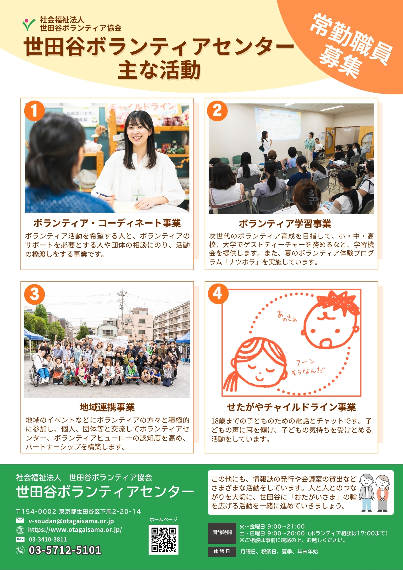 このたび、世田谷ボランティア協会では、ボランティア・市民活動推進のための常勤職員を募集します。